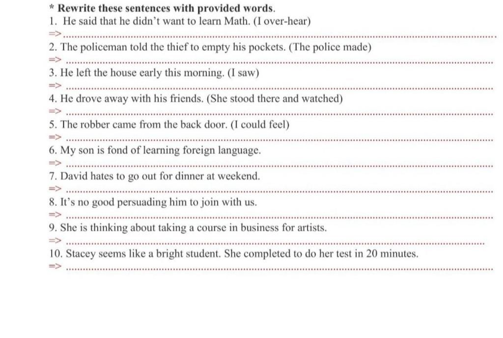 * Rewrite these sentences with provided words.