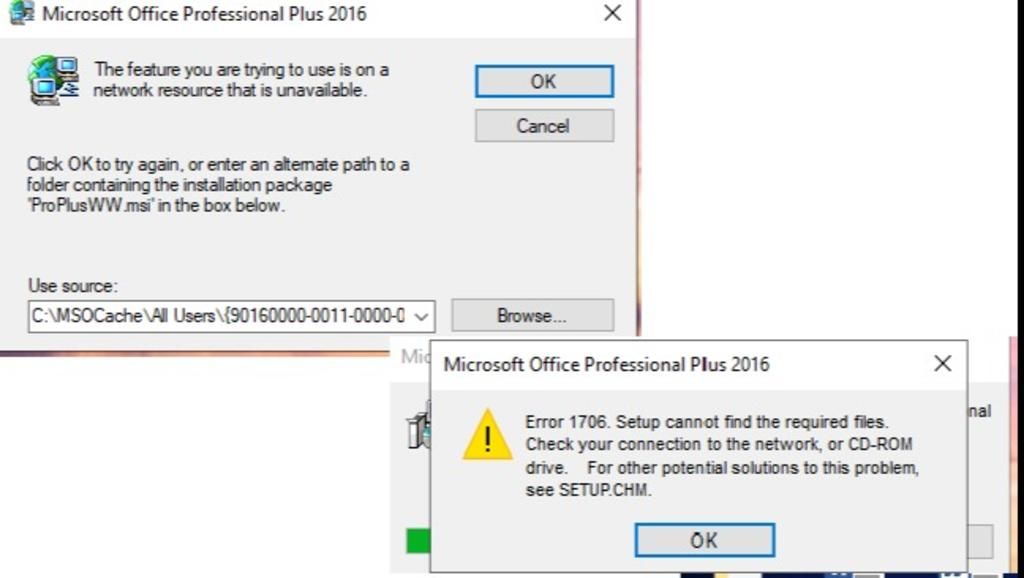 Lỗi 1706. Thiết lập không thể tìm thấy các tệp cần thiết. Kiểm tra kết nối của bạn với mạng hoặc ổ CD-ROM. Đối với các giải pháp tiềm năng khác cho vấn đề này. Xem Setup.chm.