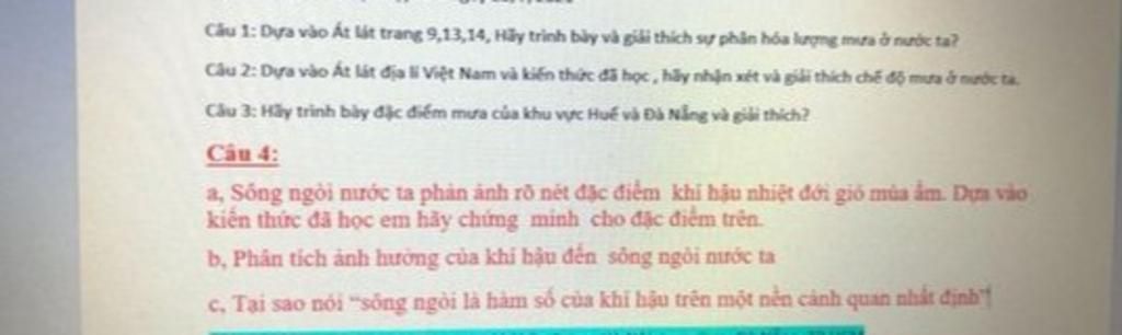 a, Sông ngòi nước ta phản ảnh rõ nét đặc điểm khí hậu nhiệt đới gió mùa ẩm.