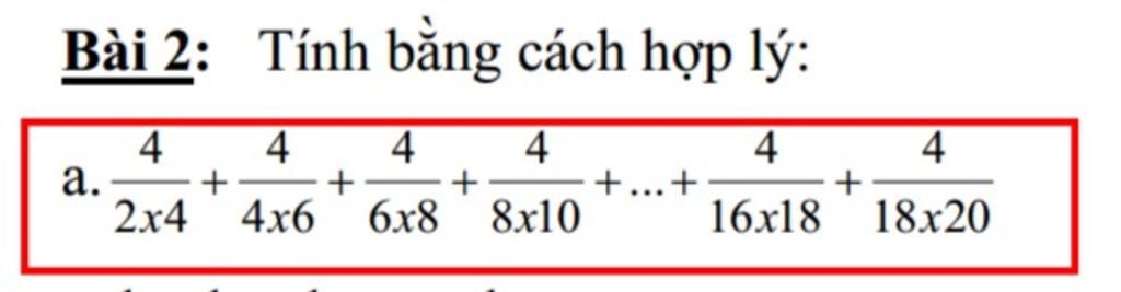 `4/(2 × 4) + 4/(4 × 6) + 4/(6 × 8) + 4/(8 × 10) + ... + 4/(16 × 18) + 4/(18 × 20)`