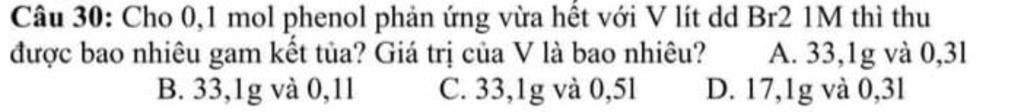 {m_{{C_6}{H_2}B{r_3}OH}} = 0,1 \times 331 = 33,1g