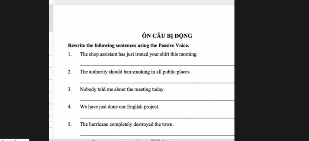 `->` Bị động QKĐ: was/were Vpp (by O)