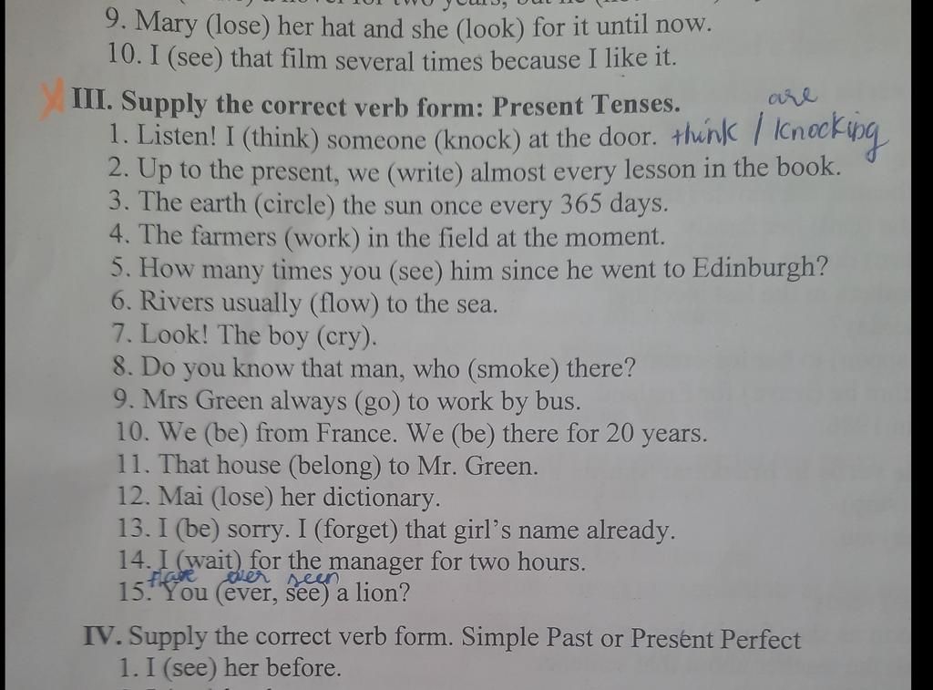 1. think / is knocking