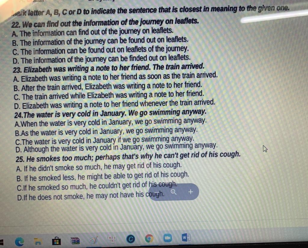 ark letter A, B, C or D to indicate the sentence that is closest in meaning to the given one.