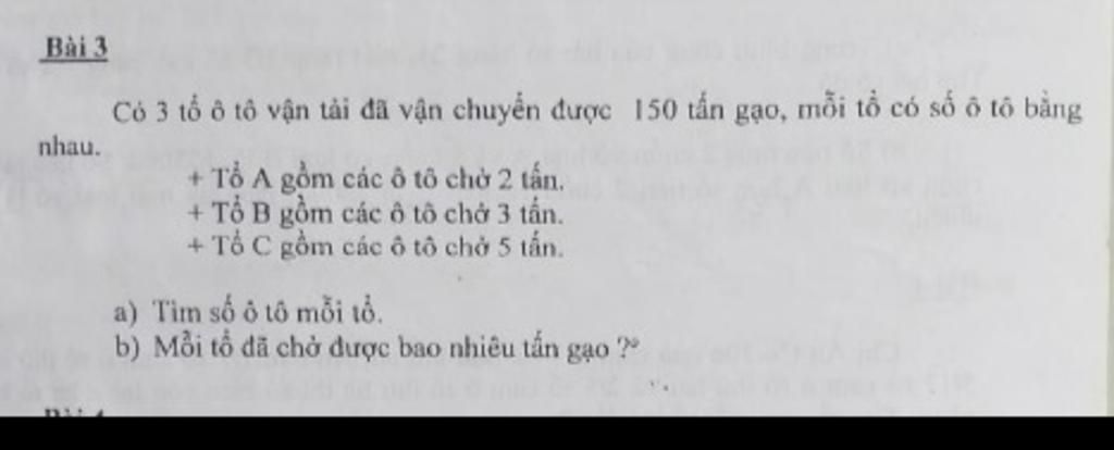 a) Vì số xe mỗi tổi bằng nhau nên số xe mỗi tổ là: x