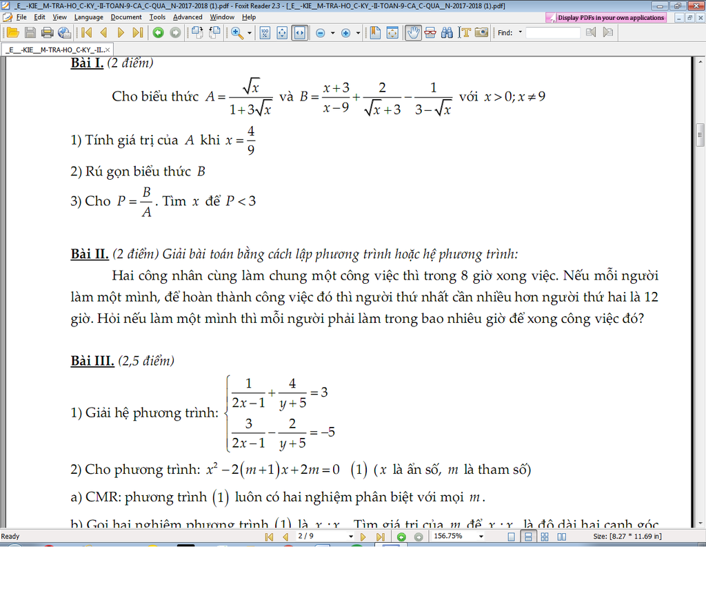 Gọi thời gian làm một mình xong công việc của người thứ 1 và thứ 2 lần lượt là x; y(x;y>0)