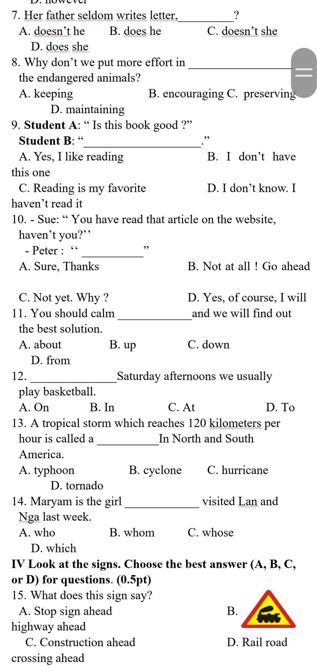 9D Quyển sách đó hay chứ? Tôi ko biết, tôi chưa đừng đọc nó