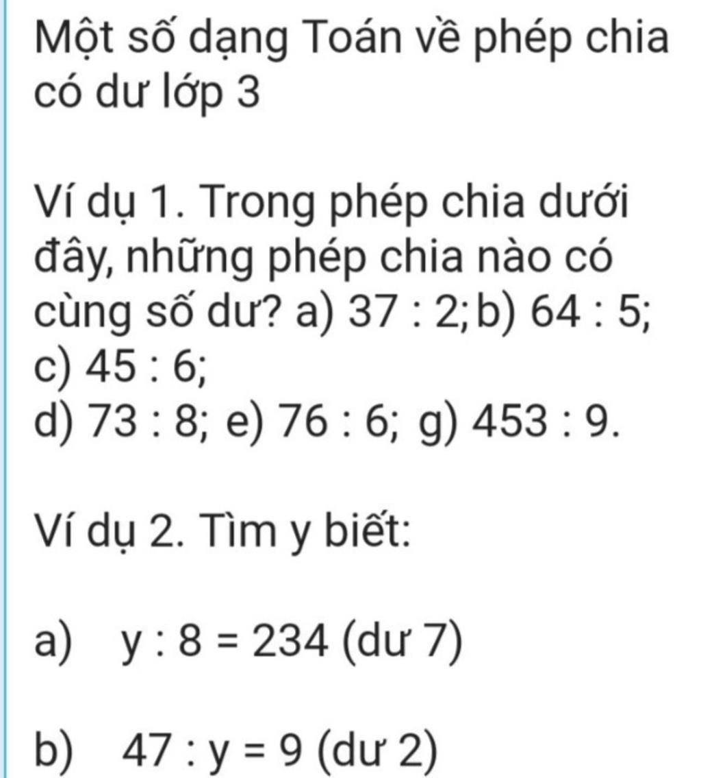 64 : 5 và 76 : 9 có cùng số dư là 4
