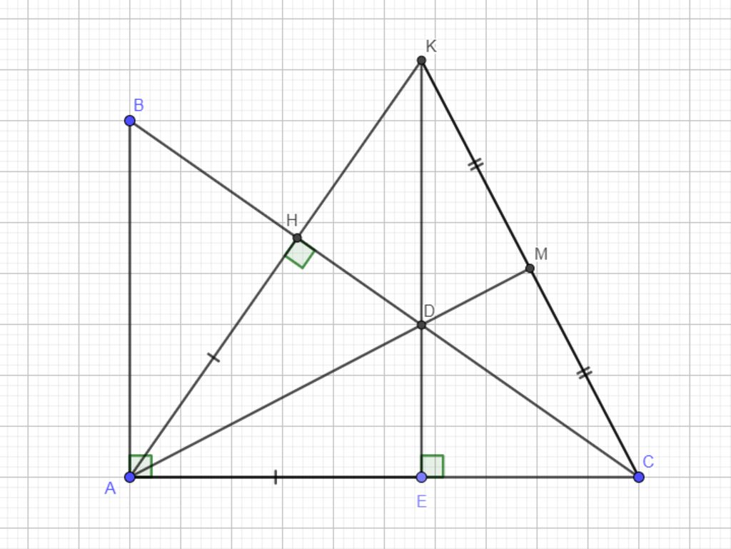 Vì `ΔDKC` cân tại `D` có `DM` là đường trung tuyến