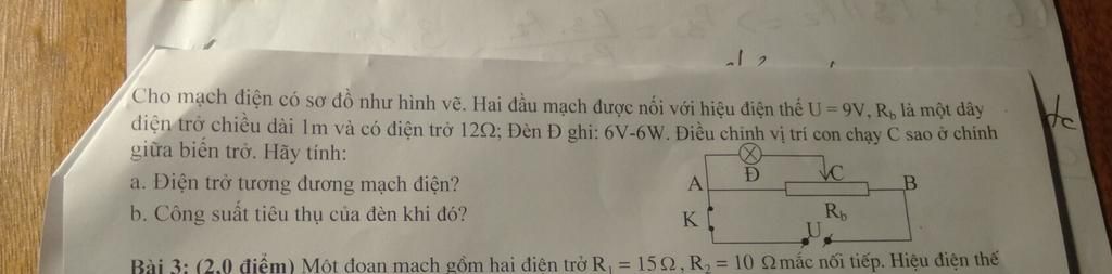 Khi con chạy C nằm chính giữa biến trở thì điện trở của 2 phần biến trở là: