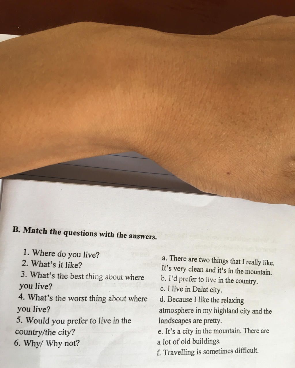 Trans: Bạn sống ở đâu? Tôi sống ở thành phố Đà Lạt
