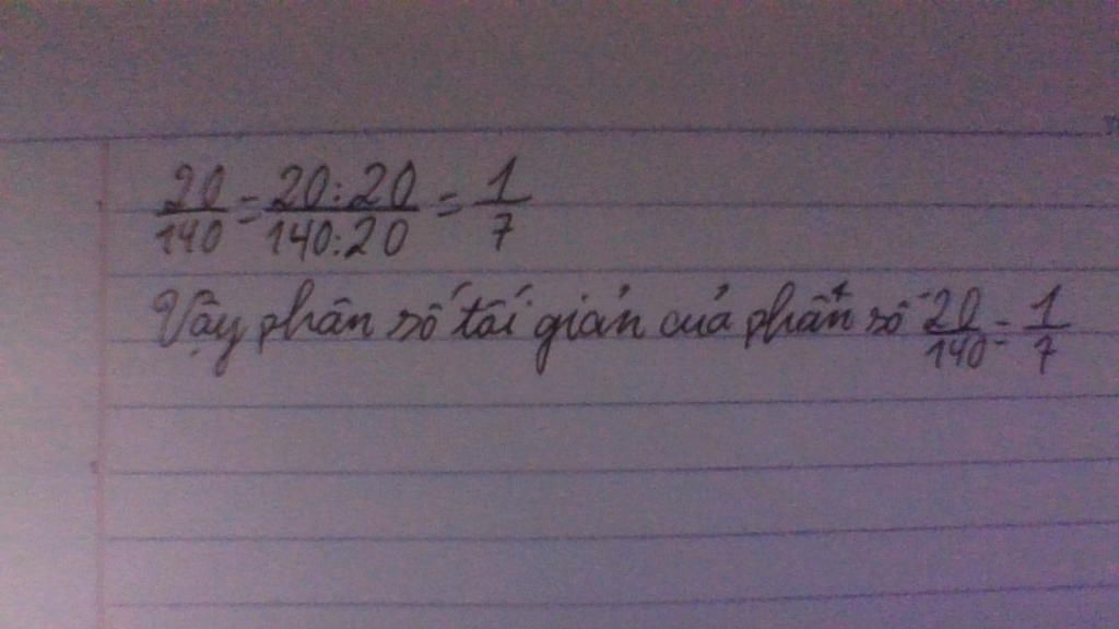 **`\text{ƯCLN (20, 140) = 20}` nên ta chia tử và mẫu cho `20`**