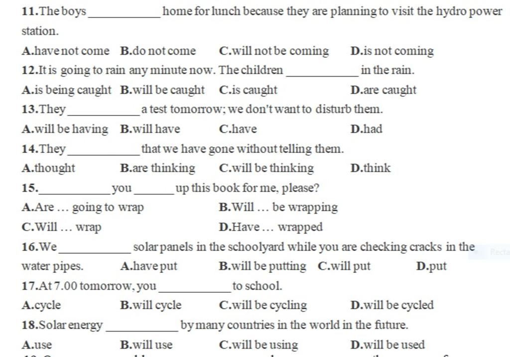 11. The boys is not coming home for lunch because thay are planning to visit the hydro power station.