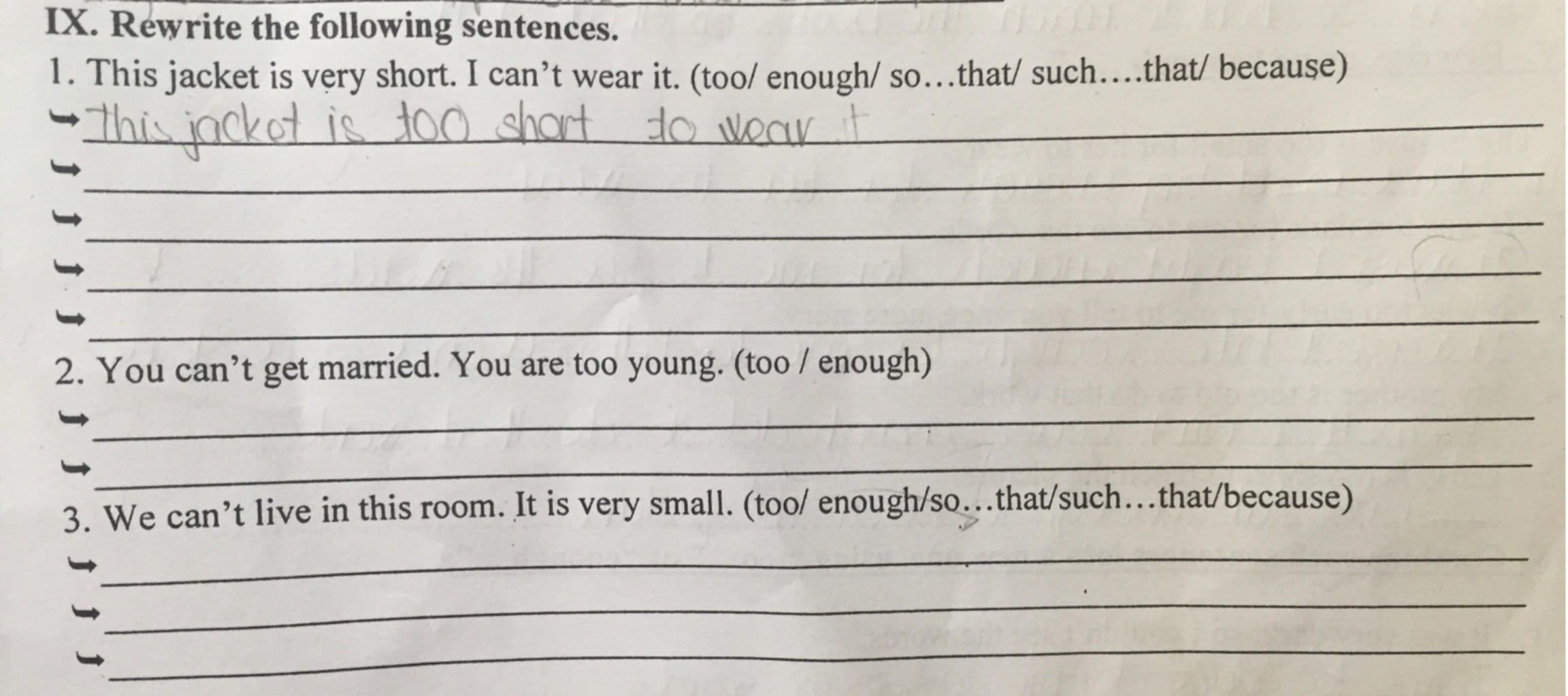 `->` Because/ As/ Since + mệnh đề nguyên nhân: bởi vì