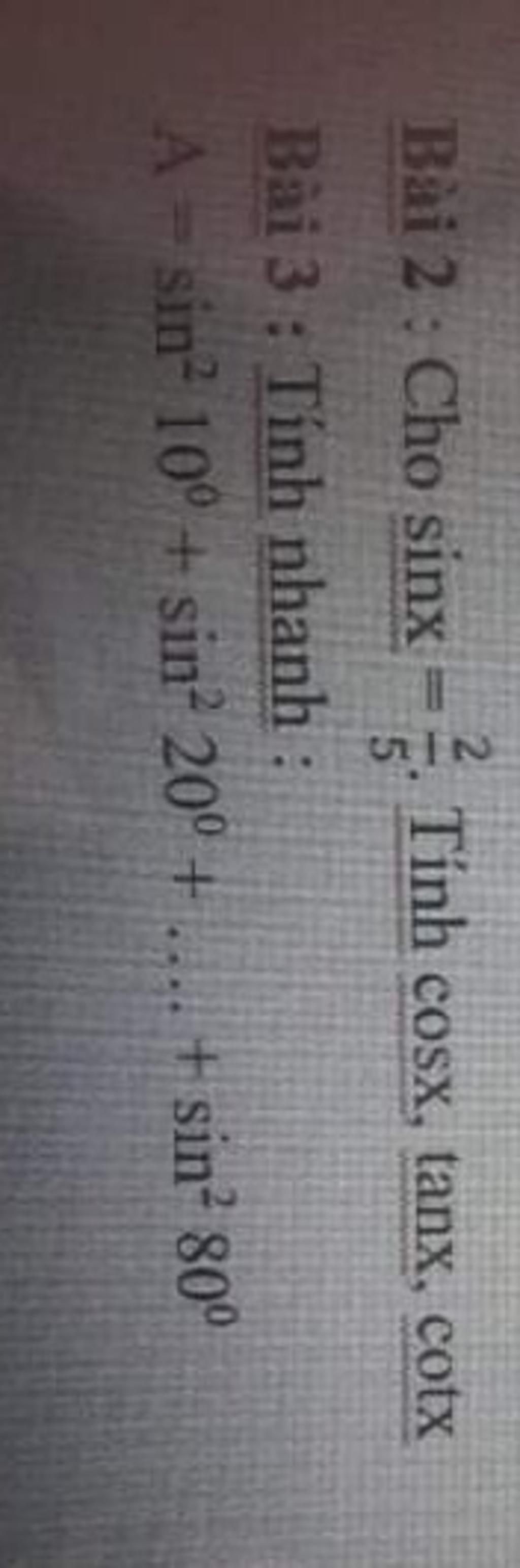 \cos x = \dfrac{{\sqrt {21} }}{5};\,\,\tan x = \dfrac{{2\sqrt {21} }}{{21}};\,\,\,\,\cot x = \dfrac{{\sqrt {21} }}{2}\\