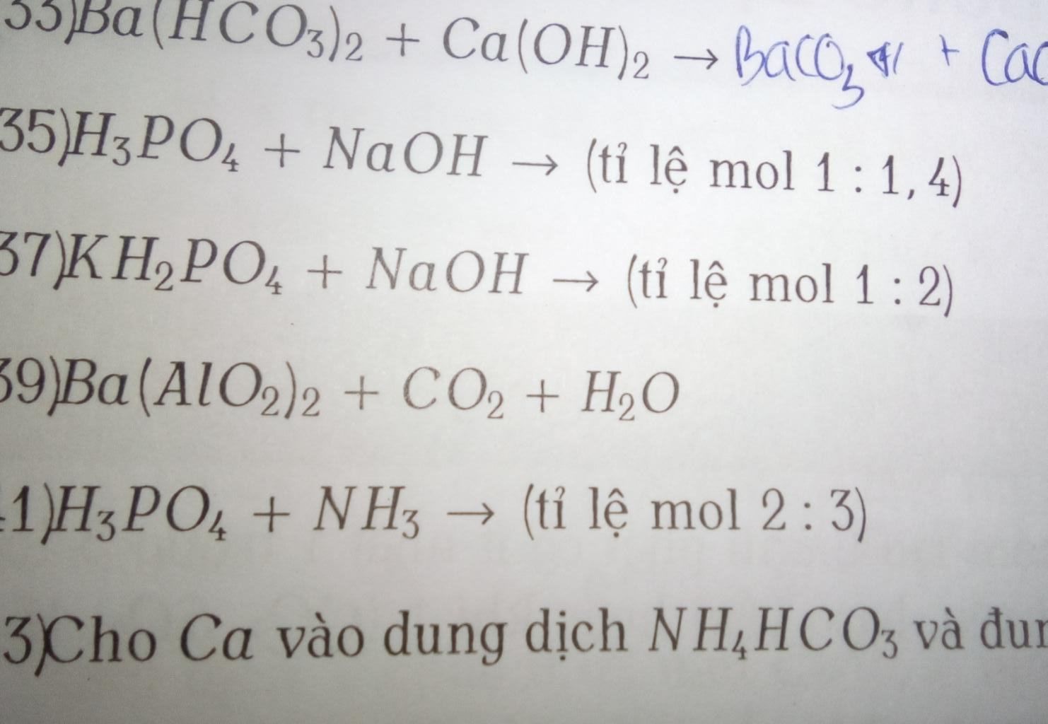35)H3PO4 + NaOH → (tỉ lệ mol 1:1, 4)