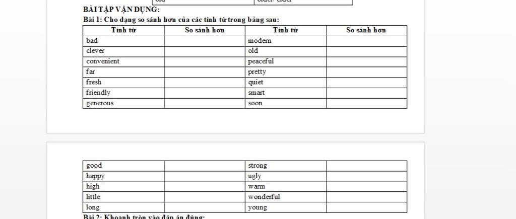 - một số tính từ bất quy tắc : good --> better , bad --> worse , far --> futher