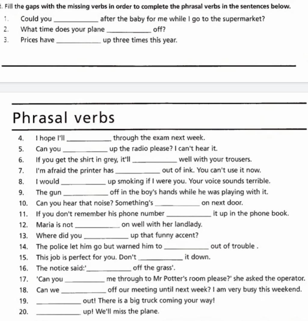 .Fill the gaps with the missing verbs in order to complete the phrasal verbs in the sentences below.