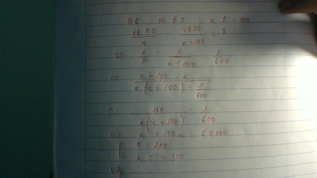 `<=> 4800(x+100) - 4800x = 8x(x+100)`