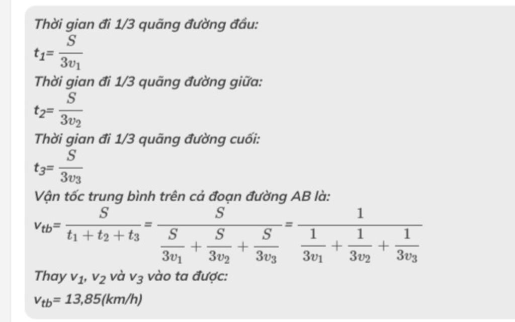 vận tốc trung bình của xe đạp trên cả quãng đường AB là: