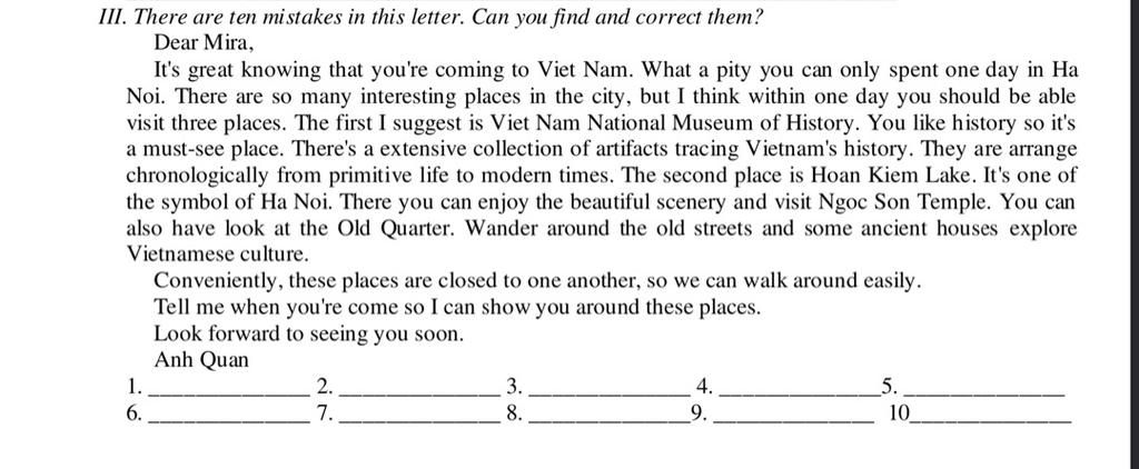 III. There are ten mistakes in this letter. Can you find and correct them?