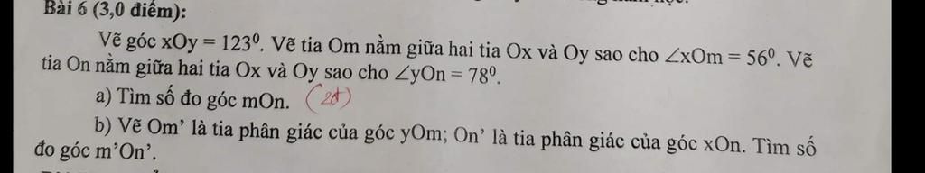 Ta có: Vì nOy > mOy (78 độ > 77 độ) => Oy nằm giữ On và Om
