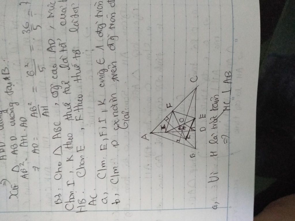 Bài 4: Cho tam giác ABC có đường cao AD, và trực tâm H. Gọi I, K lần lượt là trung điểm của HA, HB. Gọi E, F lần lượt là trung điểm của BC, AC. Chứng minh