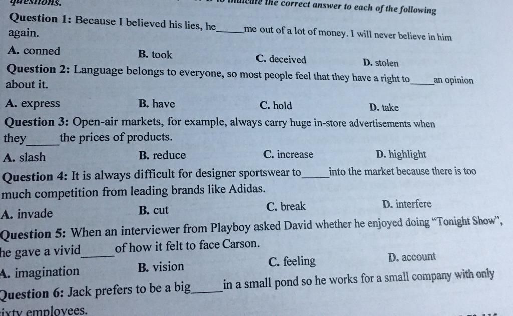 the correct answer to each of the following