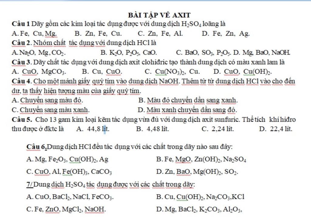 Câu 7: D. `Mg,\ BaCl_2,\ K_2CO_3,\ Al_2O_3`