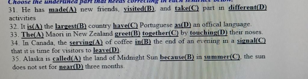 33.B->greets,vì The Maori là tên riêng =>greets chia theo số ít.