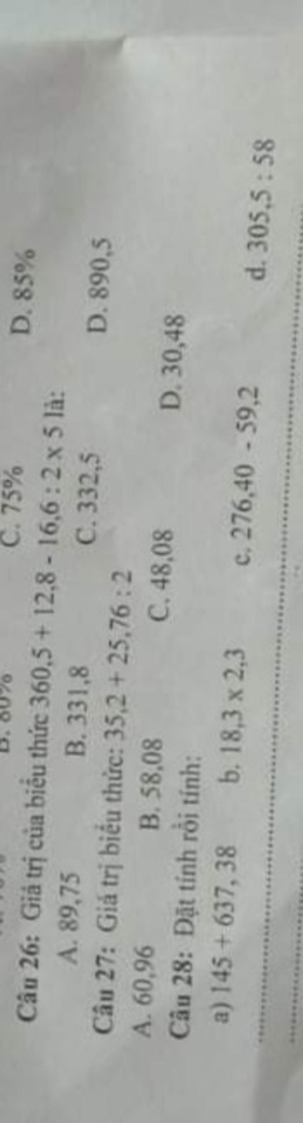 Câu 27: Giá trị biểu thuc: 35,2+25,76:2