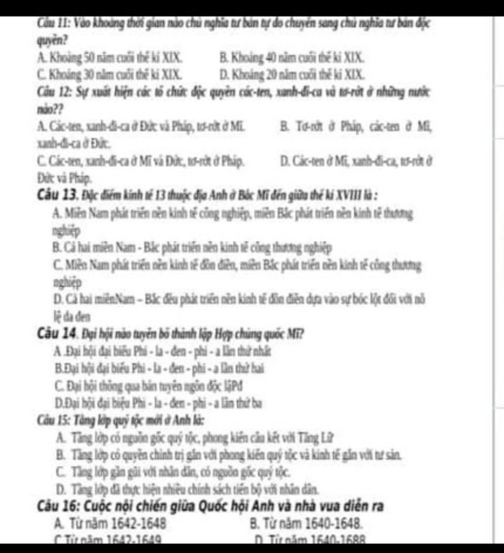 Câu 11: Vòo khoảng thời gian nào chủ nghĩa tư bản tự đo chuyển sang chủ nghĩa tư bản độc