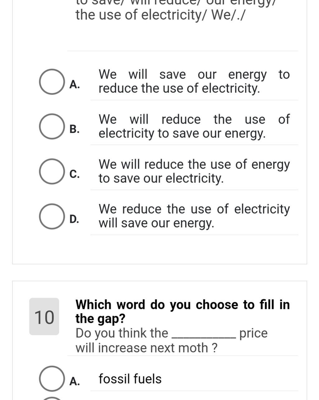 `-` Chúng ta sẽ giảm việc sử dụng điện để tiết kiệm năng lượng.