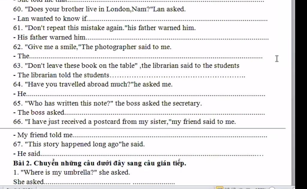 Câu tường thuật - dạng câu yêu cầu, mệnh lệnh
