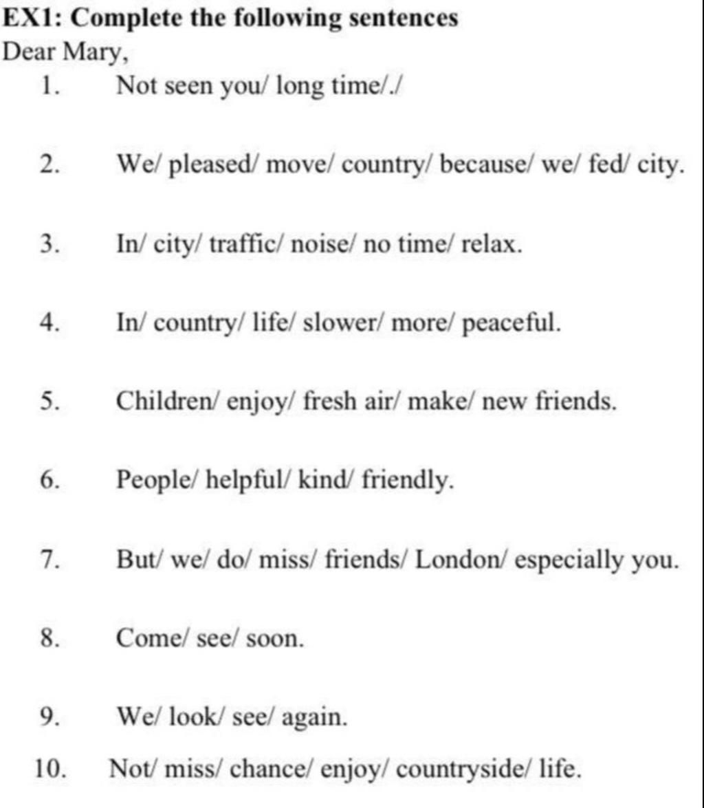 2. we / pleased / move / country / because / we/ fed / city/./