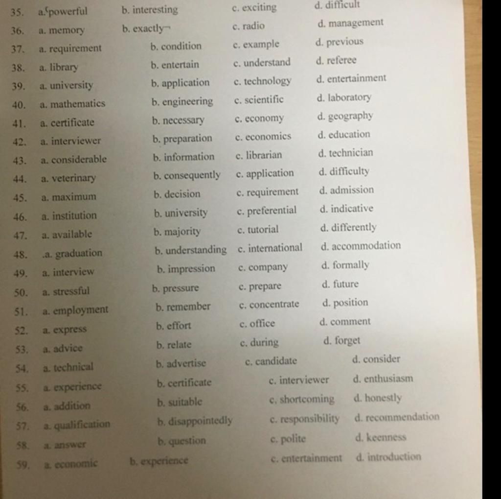 55. c. interviewer (nhấn âm 1, còn lại âm 2)