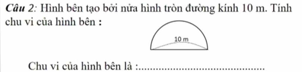 - Nhưng còn phần đường kính `= 10 m` nữa nên phải công vào do chu vi là phần bao lấy xung quanh.