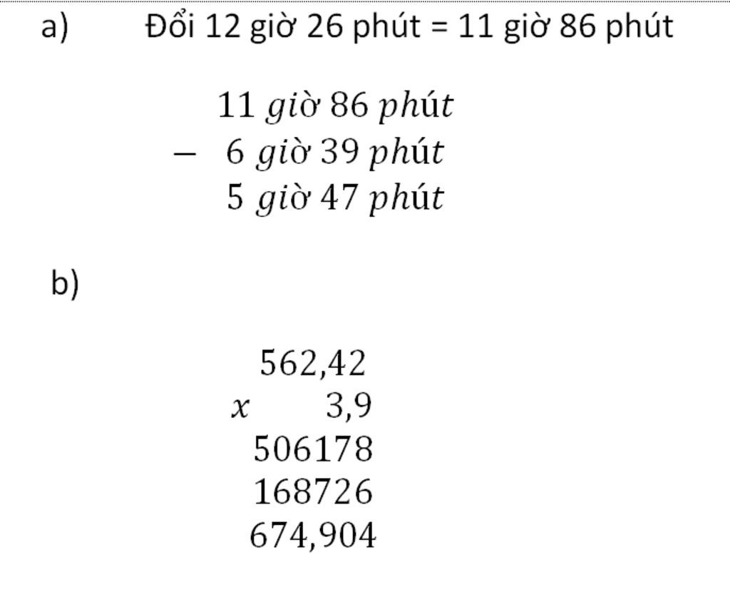 Đổi : `12` giờ `26` phút = `11` giờ `86` phút