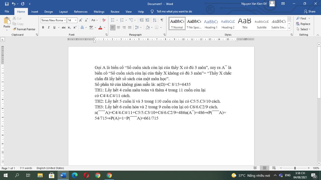 Vậy xác suất để cuốn sách còn lại của thầy X có đủ 3 môn là 661/715