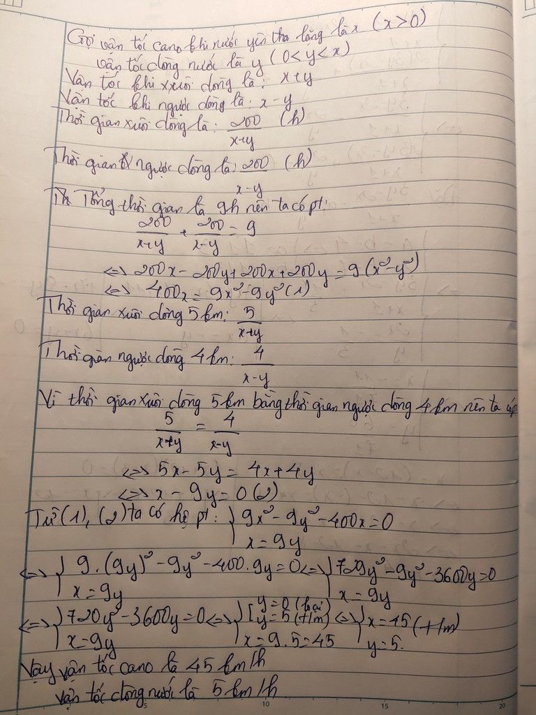 Thời gian xuôi dòng 5 km bằng thời gian ngược dòng 4km