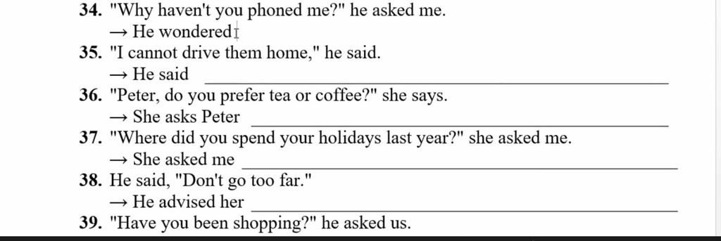35. He said (that) he could not drive them home.