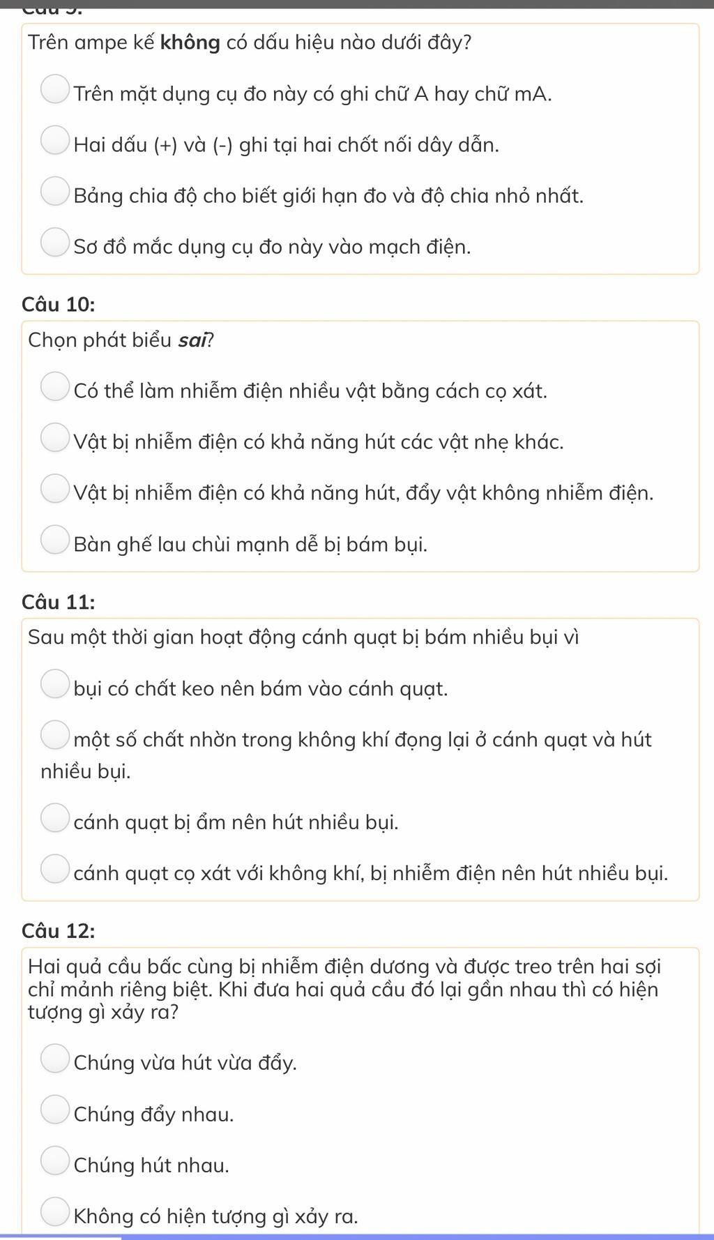 Câu C là đúng mà do bàn ghế khi bị cọ xát mạnh với khăn thì bị nhiễm điện sau đó thì sẽ hút các vật nhẹ cào nữa thì nó là đúng mà