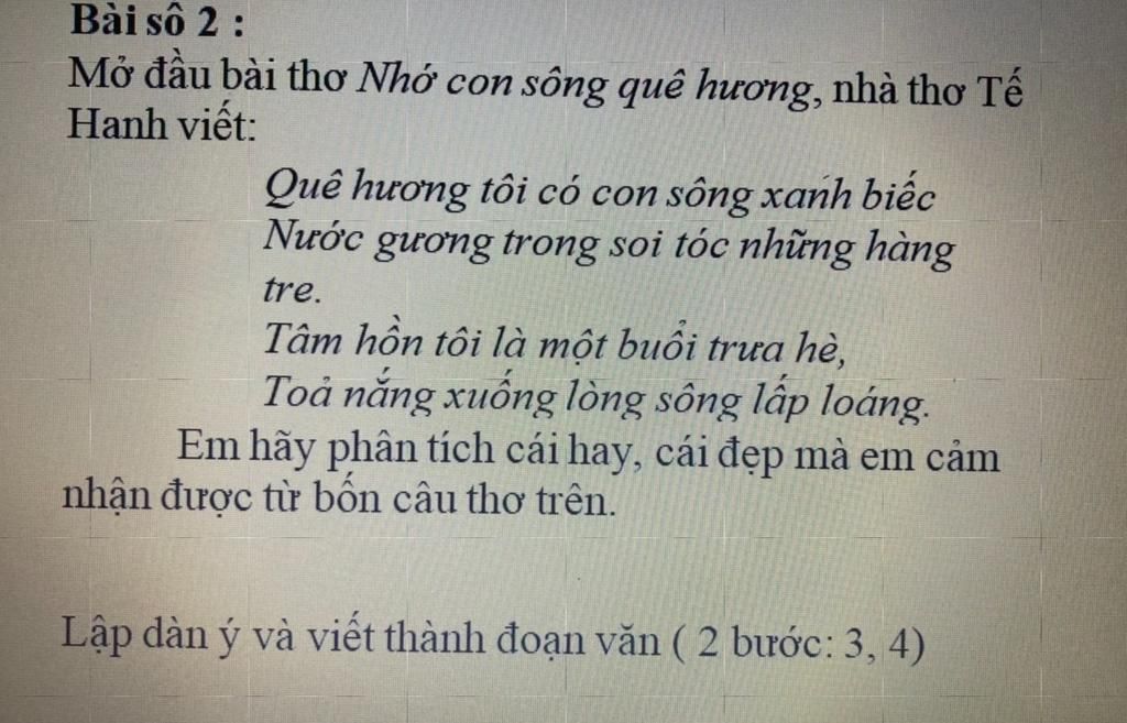 - Giới thiệu nhà thơ Tế Hanh với bài Nhớ con sông quê hương (sáng tác năm 1956 đất nước tạm chia cắt, tác giả tập kết về miền Bắc).
