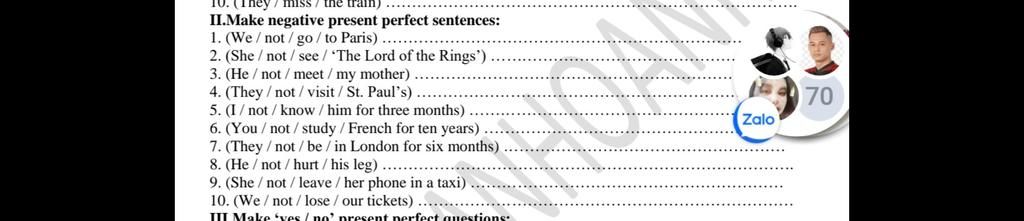 (-) S + has/have + not + V3/ed