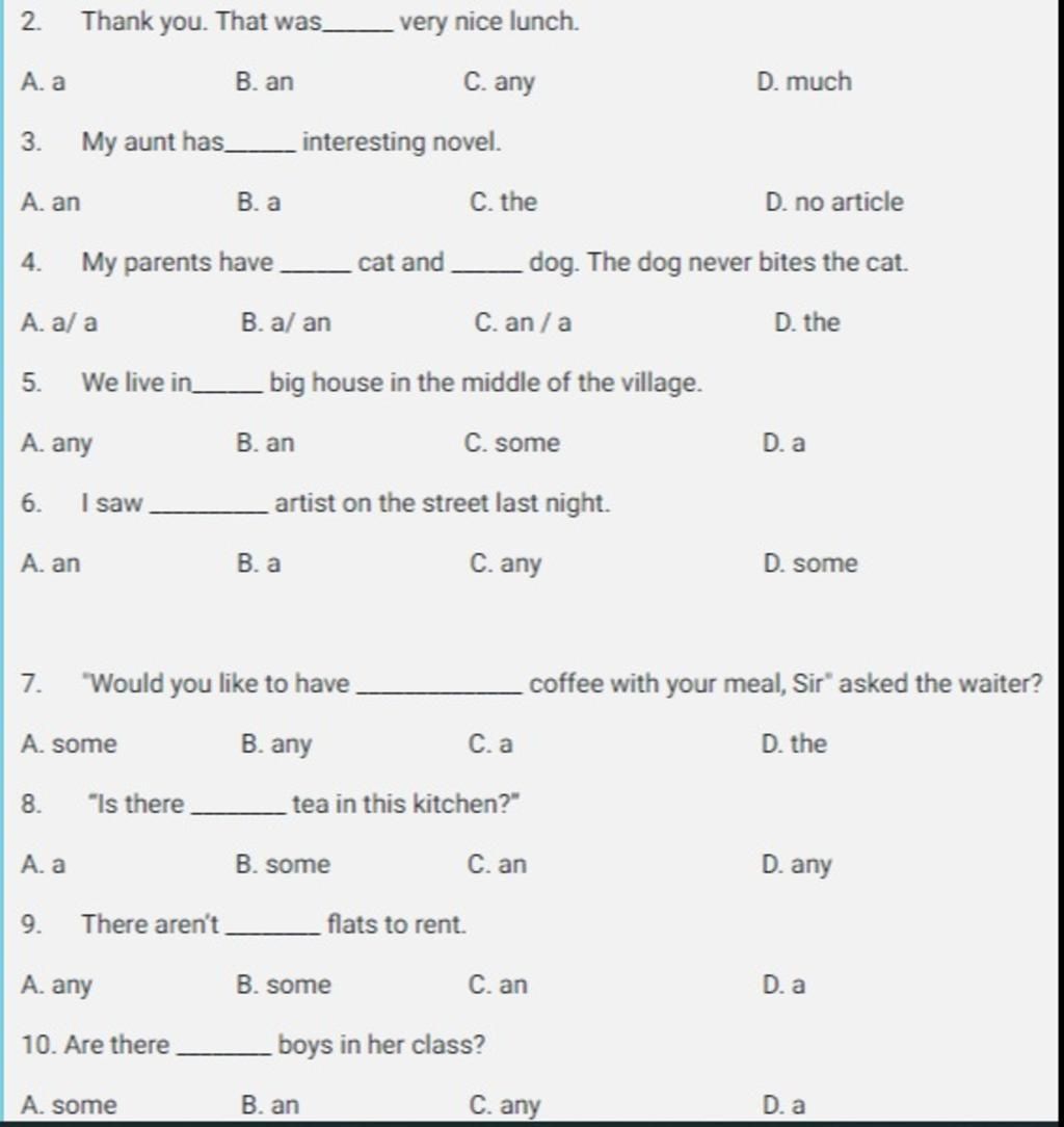 any dùng trong câu phủ định hoặc câu hỏi