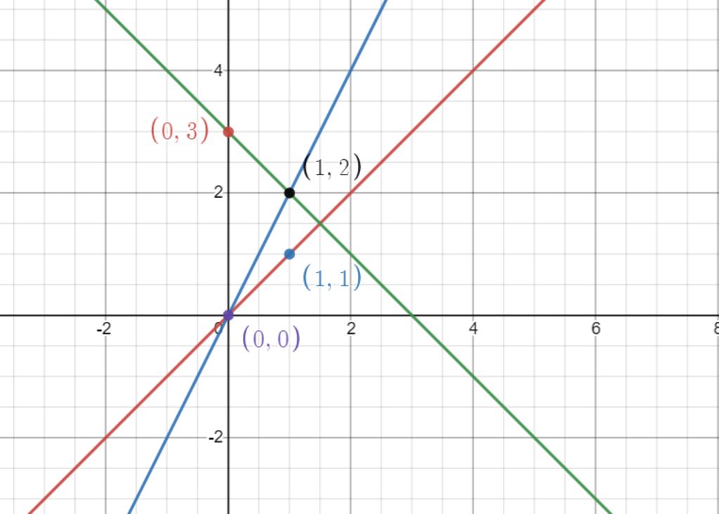Đồ thị hàm số $y=2x$ là đường thẳng đi qua hai điểm $(0,0), (1,2)$
