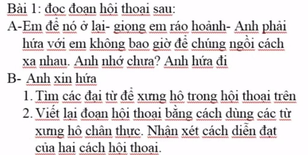 2. Viết lại bằng cách dùng các từ xưng hô chân thực.