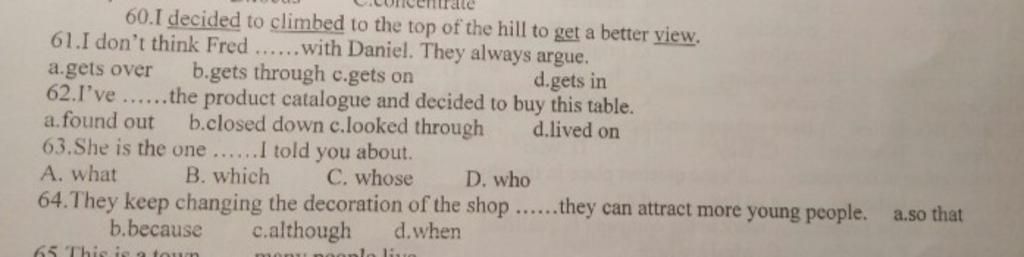 `60.` climbed `->` climbe ( decided + to V = quyết định làm gì )