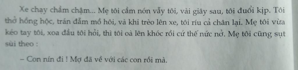 - Biện pháp tu từ : Liệt kê "Tôi thở hồng hộc, trán đẫm mồ hôi và khi trèo lên xe, tối ríu cả chân lại."