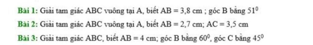 ⇒ AC = AB.tang∠B = 3,8.tang ∠B ≈ 4,7 cm